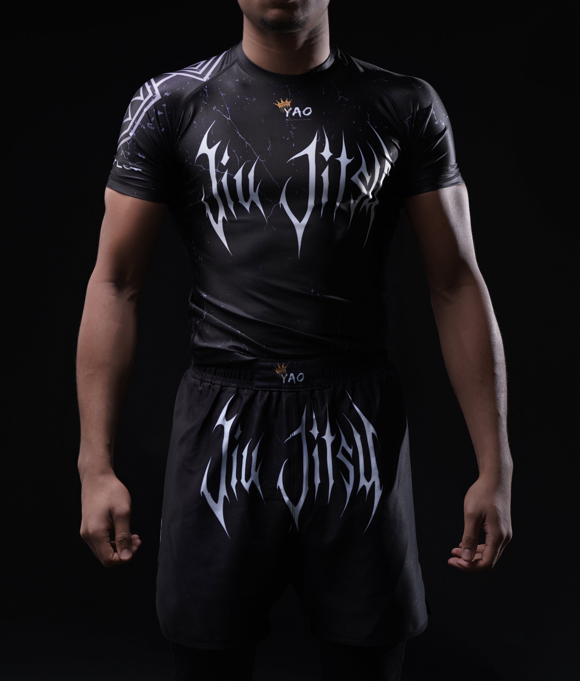 The YAO BJJ No-Gi Set includes a premium short sleeve rashguard and high-performance shorts, designed for intense training, both on the mats and in the gym.